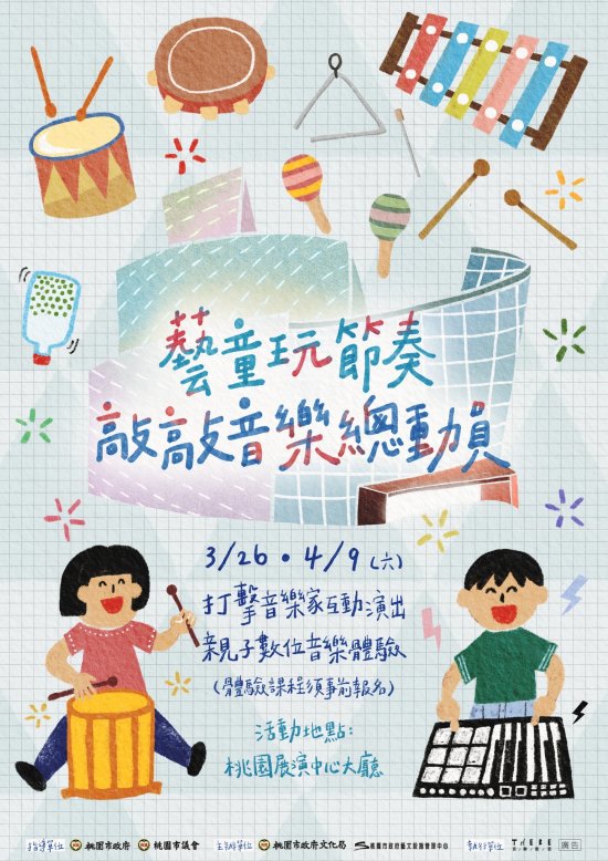 一、2022桃園兒童藝術節館舍系列活動,本中心舉辦以音樂敲打同時連結體驗課程與小型展演之活動,帶領親子一同體驗與認識數位及生活的節奏律動。