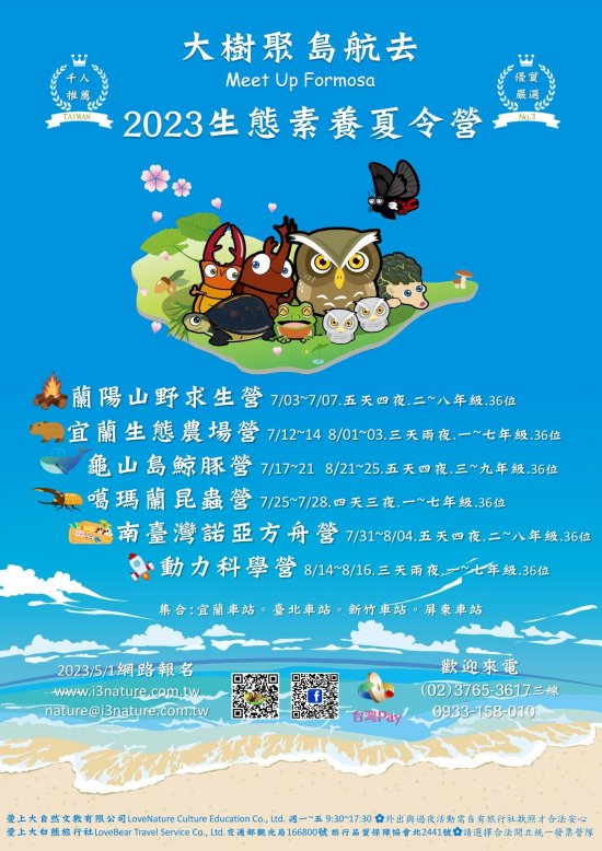 五、營隊課程5月1日開放網路報名,詳見網站:http://www.i3nature.com.tw,倘有相關問題,請逕洽該公司林雨亭小姐,電話:(02) 37653617。