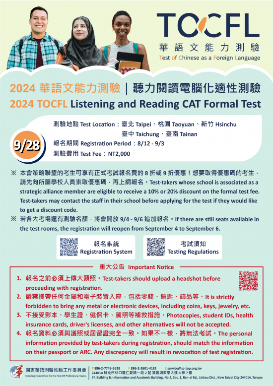 一、 | 依據國家華語測驗推動工作委員會(以下簡稱華測會)113年8月8日華測字第1132000114號函辦理。 |